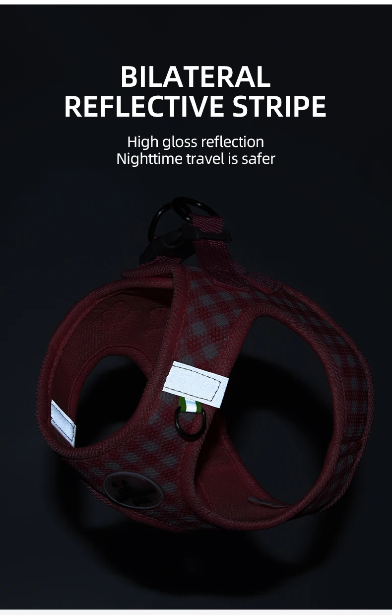 Checked Harness Small Medium-Sized Dog Cat Reflective Breathable Dog Lead Teddy Step In Bichon Pet Walking Harness Leash Rope